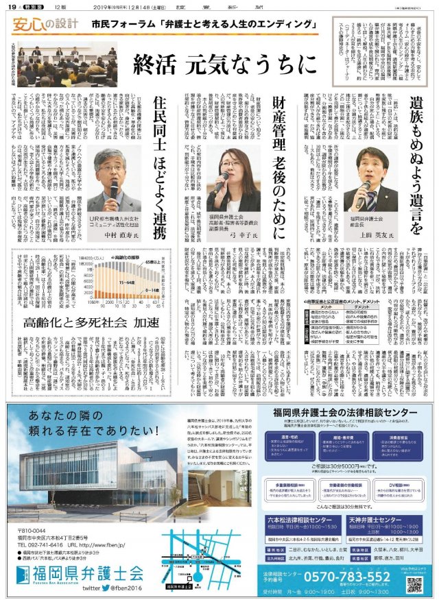 読売新聞 西部本社版 2019年12月14日掲載 福岡県弁護士会様