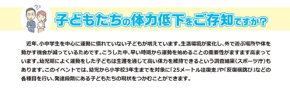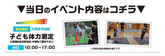 子どもの体力測定と併せて様々な企画をご用意しています!